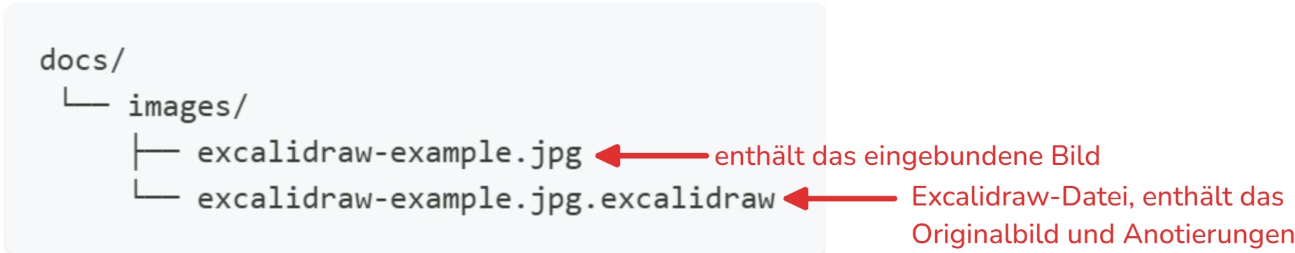 Nach dem Speichern im Editor wird die Excalidraw-Datei (.excalidraw) im gleichen Ordner wie das Bild abgelegt.